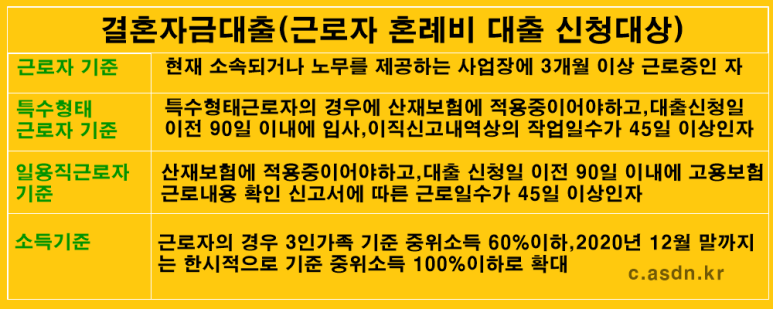 우선 먼저 근로자 혼례비 대출 신청대상 기준에 대해서 알아보고자 합니다.